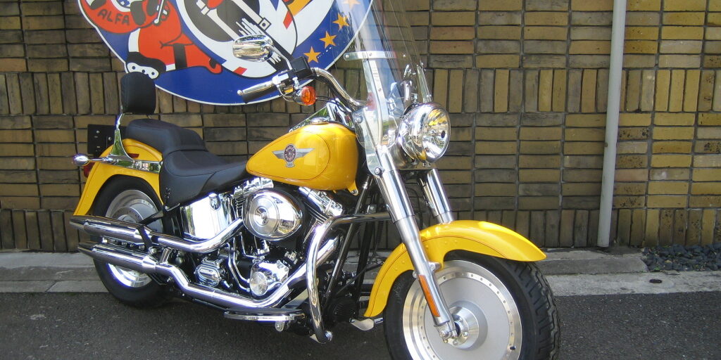 | 1年前の晴れた日、アルファのお店の中で1台の黄色いファットボーイが私を待ちかまえ話しかけてきました。