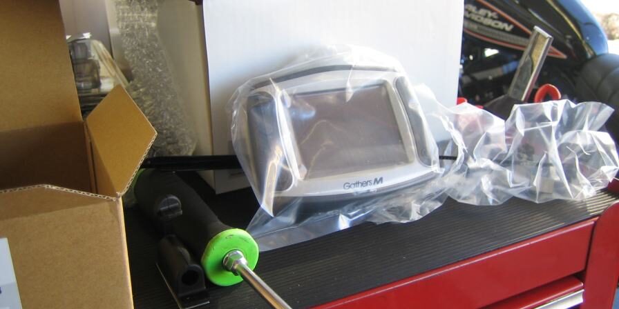 | あると便利なナビゲーション取付!今回の取付機種はギャザーズエムです。この機種は防水性が非常に高く、オートバイに取り付けるには最適な機種です。 |