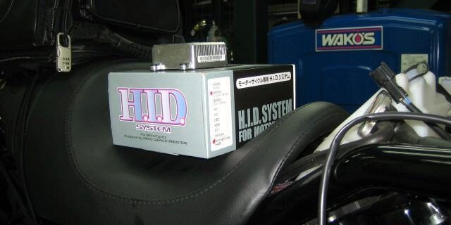 | 今回は、V-RODにHID(High intensity Discharge) ・・・とても明るいヘッドライトを取り付ける作業です。 |
