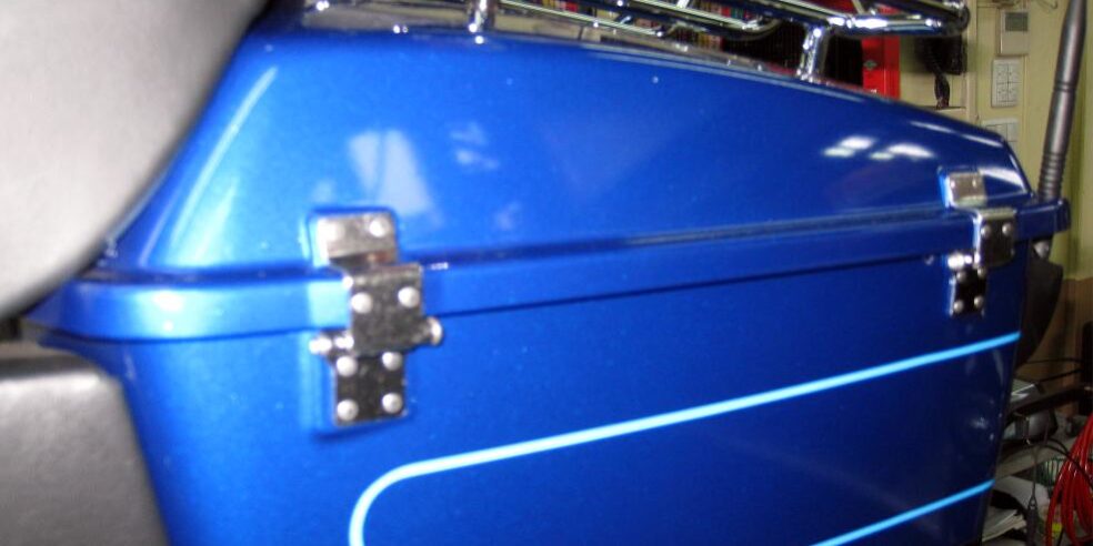 4月42011サービスファクトリー回はキング・ツアーバックの外観をグレドアップするパーツ 、プレミアム・ツアーバックヒンジ(79211-08A)を取付です。 [ 各画像をクリックすると拡大表示されます。] この写真がオリジナル(標準)で取付てあるヒンジです。 このパーツがプレミアム・ツアーバックヒンジ(79211-08A)です。 ヒンジはリベット止めになっていますので、リベットの頭をドリルを使って外します。 フタの部分&本体部分で4ヶ所のリベットを外します。 新しいヒンジを取付ます。 キズ等を付けないように 二人で慎重に作業を進めています。 完成!! ツアーバックがより豪華になりました。 共有:シェア Facebook で共有するにはクリックしてください (新しいウィンドウで開きます) Facebook クリックして X で共有 (新しいウィンドウで開きます) X Post navigationPreviousPrevious post:◆スライダー取付NextNext post:◆SENSOR,LOW FUELの交換