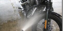 クリスタークォーツの溶剤をバイク全体に塗布していきます