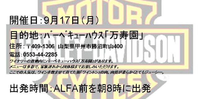 ご参加頂ける方は、9/15(土)までにご連絡宜しくお願いします。