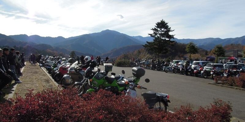 とても良いお天気で紅葉が美しい宮ヶ瀬湖はオートバイで埋め尽くされておりました。
