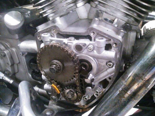 ボトムエンドから騒音が・・・ カムサポートプレートを取り外し原因を探っていきます(*゚ー゚)> 原因はこちら・・・・(/_<) カムチェーンテン…