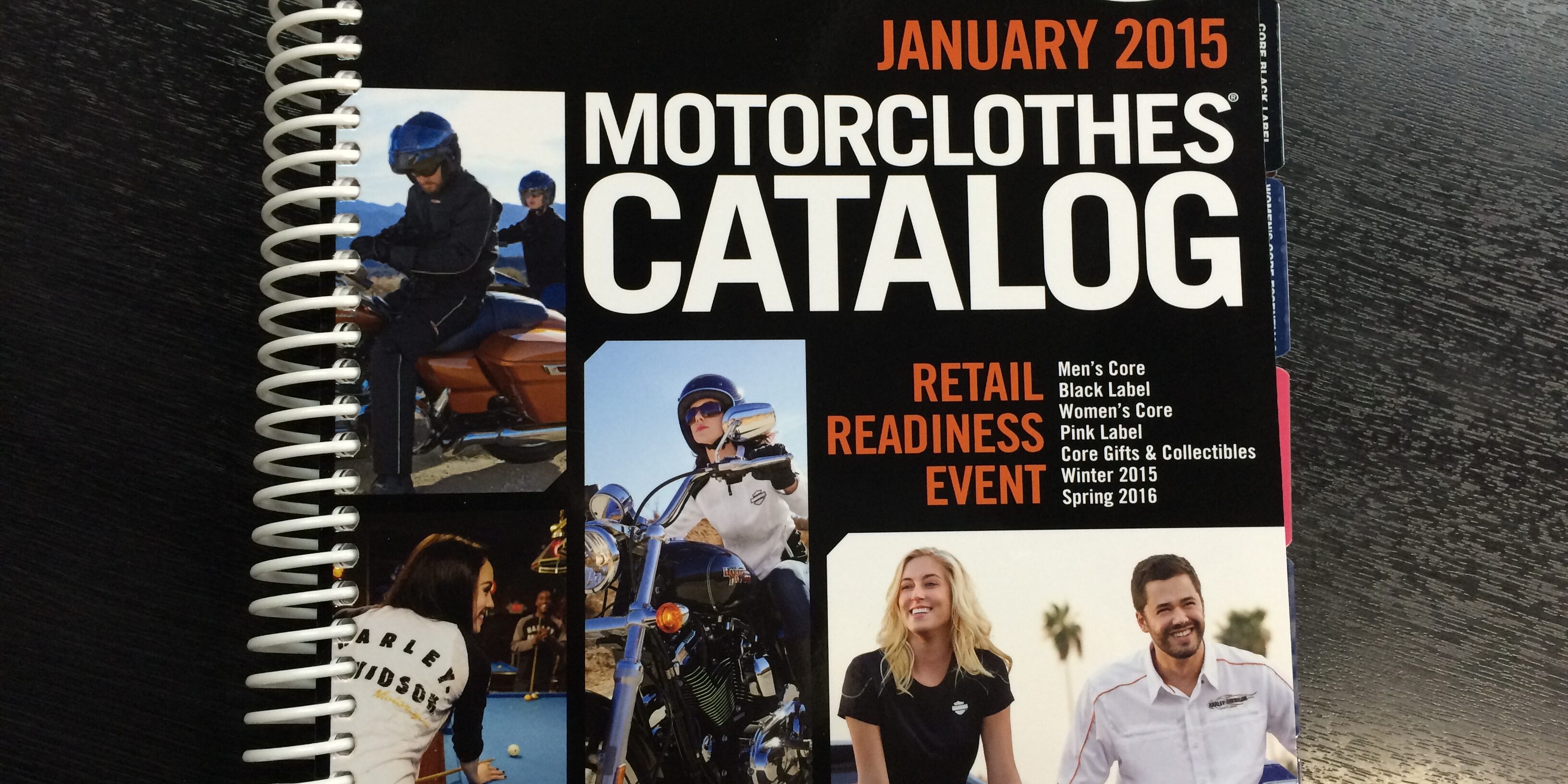 写真のカタログはハーレーウェアの新商品受注カタログです。