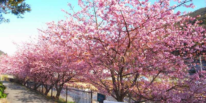 花弁が大きく鮮やかなピンク色の河津桜。幻想的な桜並木をハーレーでお散歩しよう!