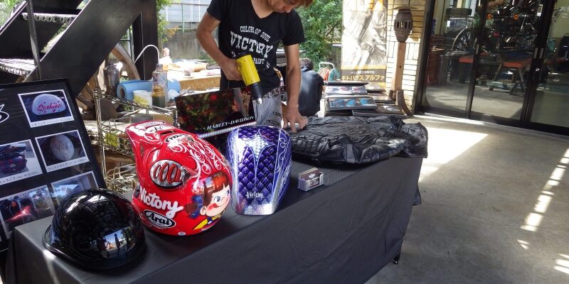 ビクトリーカスタムペイントさん到着!T様ご依頼のFXRGレザージャケットの下準備スタートです。