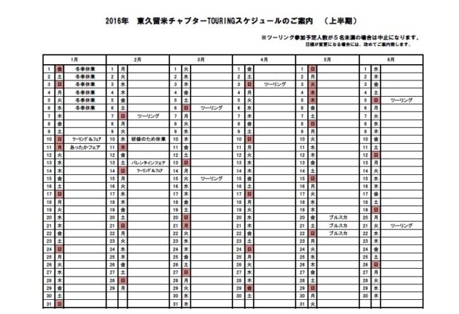 お待たせいたしました! 2016年東久留米チャプター上半期スケジュールです。 年明け第一弾のツーリングは2016年1月10日(日)ですヨ! 年末年始の営業は、12月28日(月)から1月6日(水)までお休みさせて頂きます。…