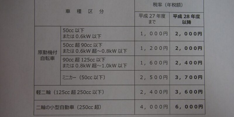 3月292016ハーレーダビッドソン東久留米のブログ 税制改革に伴い、平成28年度以降の軽自動車税の税率が変更になります。 (平成28年4月1日以降)ご参考までに・・・。 共有:シェア Facebook で共有するにはクリックしてください (新しいウィンドウで開きます) Facebook クリックして X で共有 (新しいウィンドウで開きます) X Post navigationPreviousPrevious post:普通自動二輪免許でも乗れる!ハーレーダビッドソン試乗会NextNext post:EFIチューニング前の準備