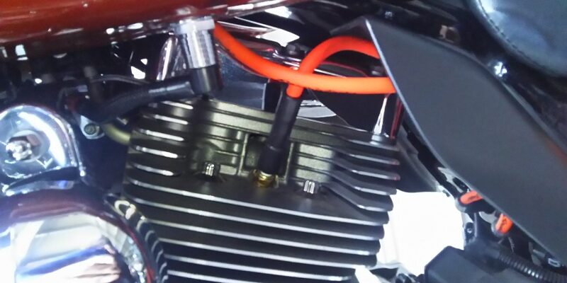 今回の課題はこのプラグとプラグワイヤーであります。現在、標準で取り付けてあるプラグも良い火花を出しますが、さらに加速を求めるのであれば、スクリーミンイーグルのスパークプラグがお薦めです。
