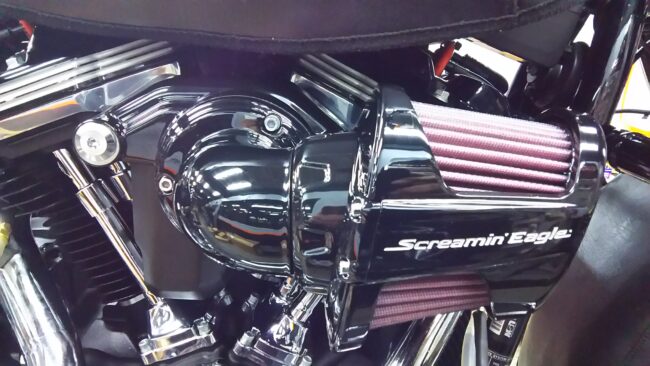 挑戦者Mの新たなる課題 皆さん、おはようございます! 今回ご紹介いたしますのは こちらのエアクリーナーです。 ミルウォーキーエイト用に開発されました このエアクリーナーは 吸気がよく見た目もかっこいいですね。 トルクも十…