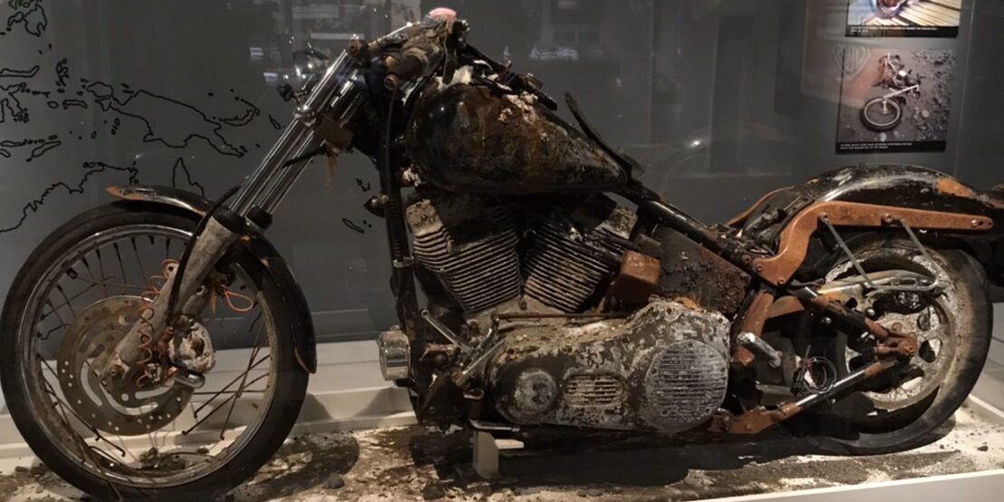 津波によって日本から約6000キロ離れたカナダまで流されたハーレーが展示してあります。