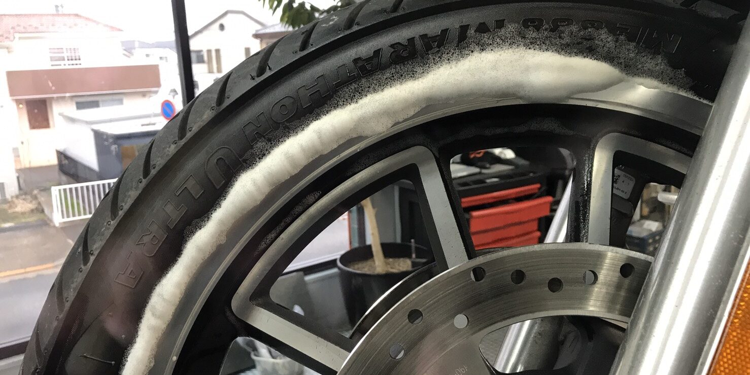 この状態で放置すると駐車中にジワジワと空気が漏れて、乗る時にタイヤがペッタンコ!!…になっているパターンです。ホイールのリムとタイヤのビードをしっかりと清掃させていただきました!