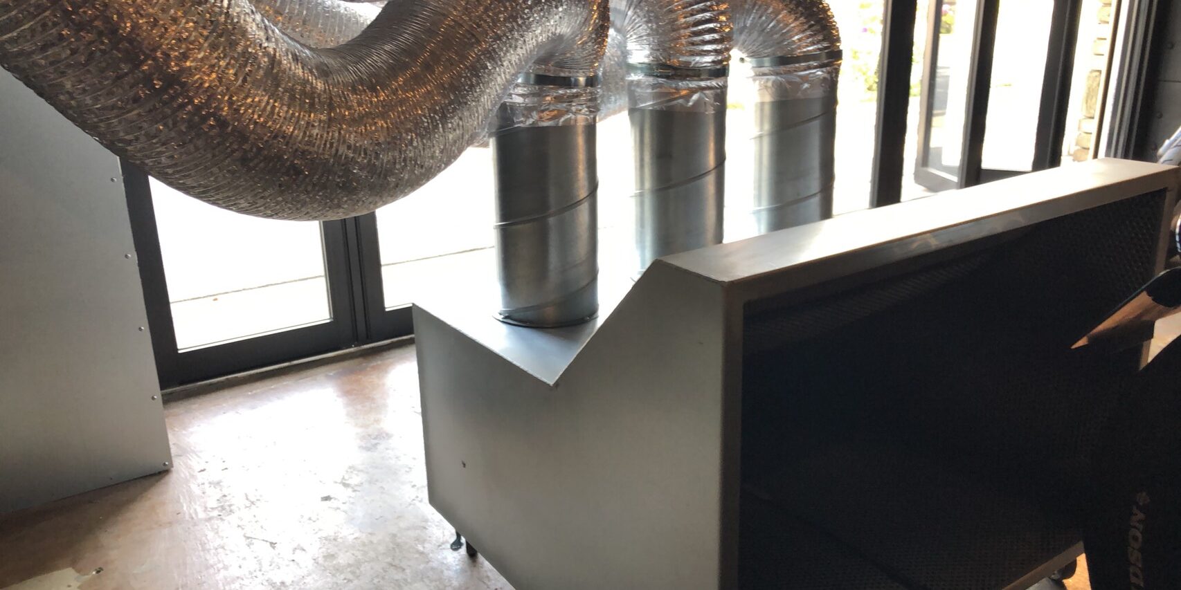 排気ファンを天井から吊るしているので、床が広く使えるようになりました。