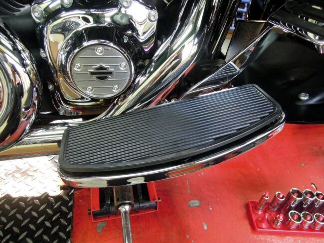 足もとのドレスアップ! FLTRU(ロードグライドウルトラ)にエレクトラグロー・フットボードインサートを 取り付けました!(51082-10) 取付前の様子です。 取付完了! スイッチ ON!!