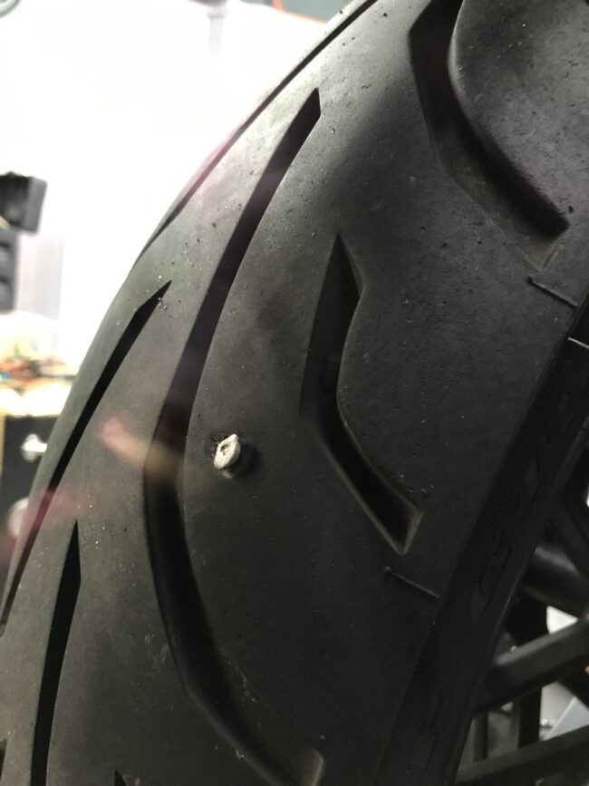 点検の際には 必ずチッ素ガス充填と・・・ 前後タイヤのパンク点検を 実施しております(*^。^*) 刺さってます(゜Д゜) チューブレスタイヤの特性上 全く気付かないときもあります。 異物を取り除き パンク修理となりまし…