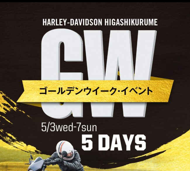 残すところ2日となりましたゴールデンウィーク。 皆さま、いかがお過ごしでしょうか? H-D東久留米では本日もイベント開催中ですヽ(^o^)丿 イベント詳細はコチラから↓ http://www.harleyd…
