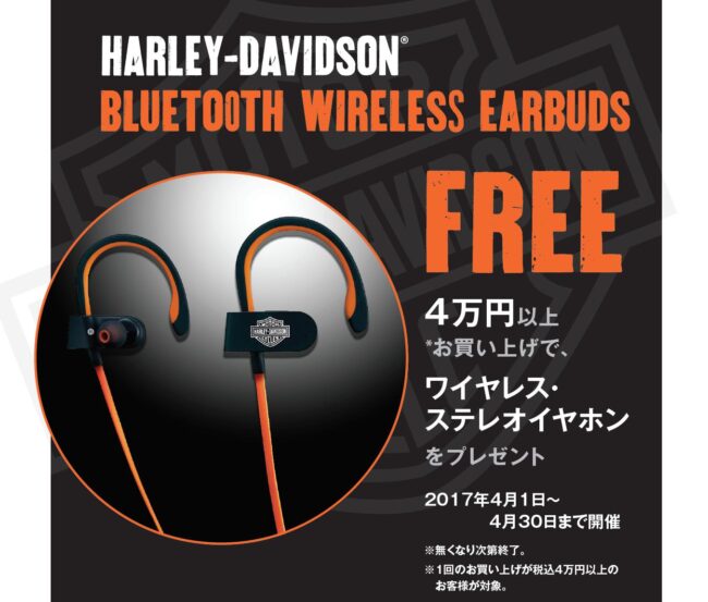 ハーレー純正ワイヤレス・ステレオイヤホンをプレゼント!! 本日18時までです(^^)/ 詳細はコチラから↓ http://www.harleydavidson-higashikurume.com/news/7487/
