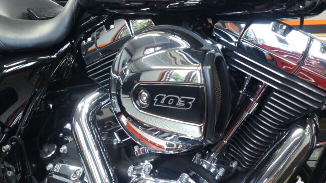 ツーリングモデル ロードキング エアークリーナーカバーを交換致しました。 ノーマルも103の数字が エンジンの大きさをものがたり カッコいいのですが(^-^)/ このカスタムエアークリーナーカバーに変えることで クラシカ…