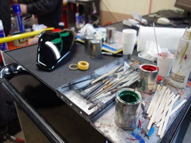 いつもの見慣れたALFAピットの工具箱に絵の具・・・? そうです。 先週末はKIDさんがALFAにて何件かの作品を製作なさっておりました。 こちらの車両はニューモデルのXL1200T❤ 女性らしく、とてもいい感じの仕上が…
