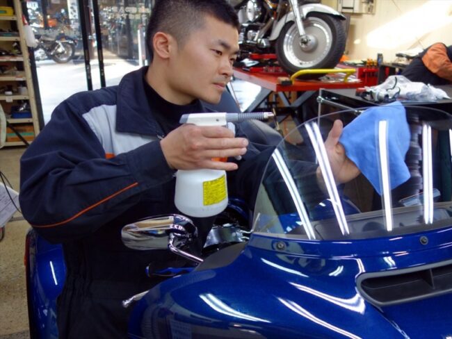 明後日に納車予定のTRI GLIDE ULTRA (TRIKE)に究極の ボディーコーティングCRYSTER QUATZ-クリスタークォーツ-を 施工しました!! 施工前の下地作りの様子です。 ボディ以外にエンジンや足回…