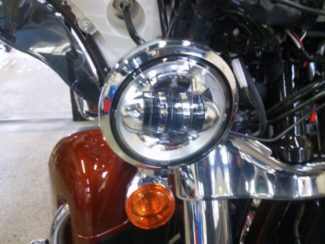 圧巻のFLHTCUSE8。 こちらの芸術的なカラーリングとカラーコーディネートされたヘルメット。 夕方過ぎの店内で、あまり綺麗に撮影出来ませんでしたが・・・。 大変美しい仕上がりです。 車両のカラーリングとヘルメットをコ…