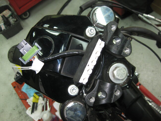 ハンドルポストの交換を承りました(^_^) メーターブラケットでハンドルを固定してるので・・ ブラケットの移設も作業していきます(*゚ー゚)> ポストはこんな感じです。 エンジンの左側に移設しました~