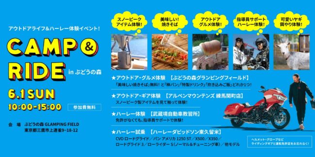 2025年6月1日(日)CAMP & RIDE 2025モデル試乗会開催! 【東京都三鷹市】ぶどうの森 GLAMPING FIELD 【2025年モデルが乗れる!ハーレーダビッドソン試乗会開催】 い…