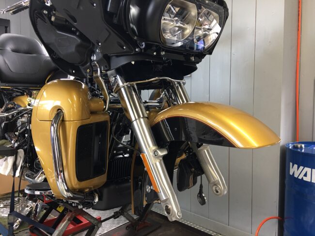 現在ロードグライドウルトラのカスタム中です ホイールの塗装から無線、ナビなど様々なカスタムをしております。 配線作業が多いので時間もかかりますが、 通す場所によって見た目が左右されるので、 なるべく見せない…