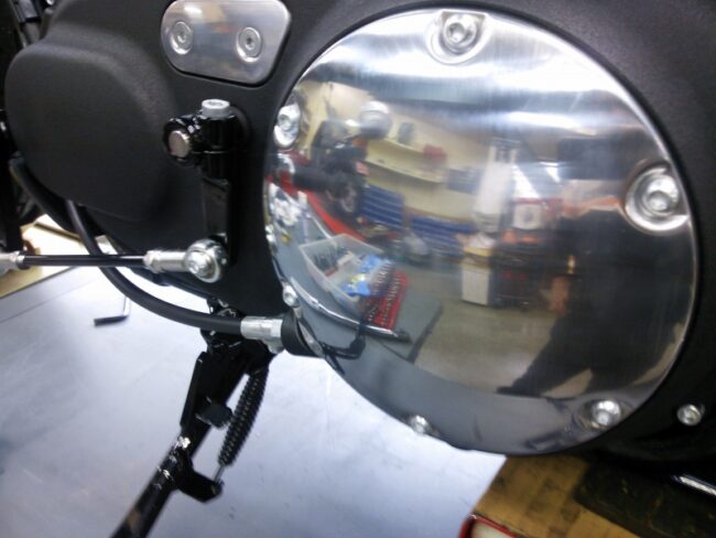 クラッチが軽くな~るMRCクラッチの取付を承りました(^_^) クラッチのアジャスターをいっぱいに緩めダービーカバーを外します MRCクラッチを取り付ける準備を・・・しっかりグリ…