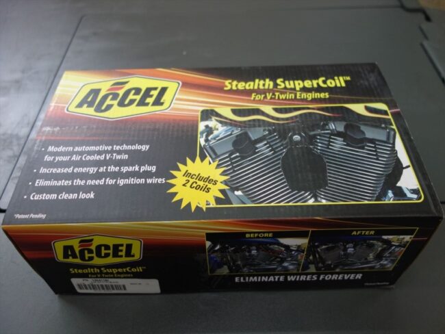 アクセルステルススーパーコイル(ACCEL STEALTH SUPERCOIL)の取り付けです 取り付け前の状態です オリジナルのイグニッションコイルを取り外します ヘッドカバーボルトにアダプター(左側)を取り付けです、…