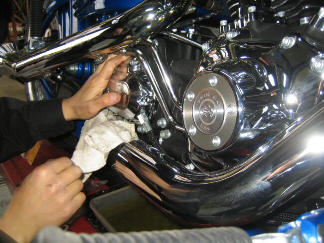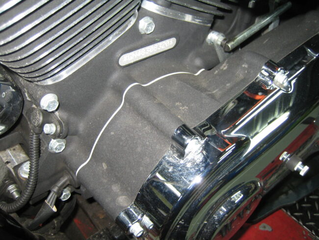 ちょっと贅沢なカスタムのご紹介です。 [ 各画像をクリックすると拡大表示されます。] こちらの写真は、エンジン左側プライマリーハウジングです。もちろんノーマルの状態です。 写真で見えている、右…