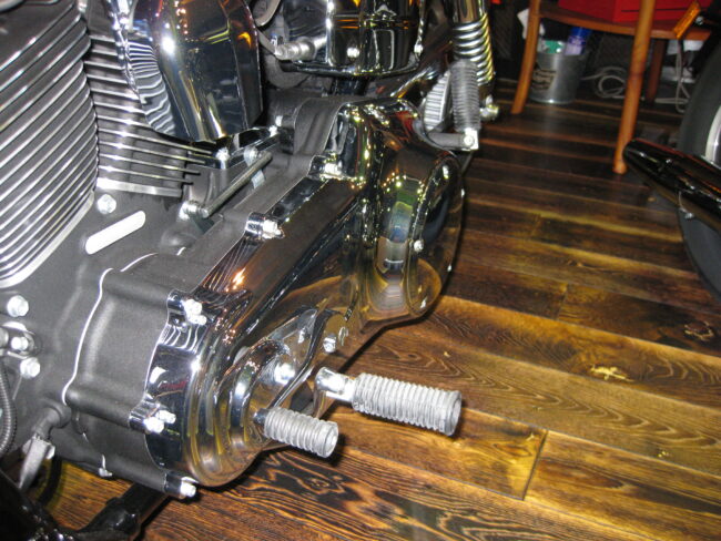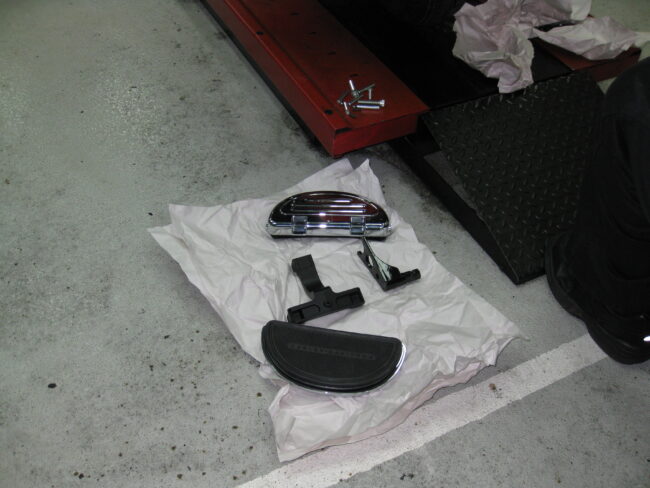 今回は、ヘリテイジのバータイプのフットペグを新商品のオールドスタイルパッセンジャーフットボードキットに交換します。 [ 各画像をクリックすると拡大表示されます。] 新商品のオールドスタイルパッセンジャーフッ…