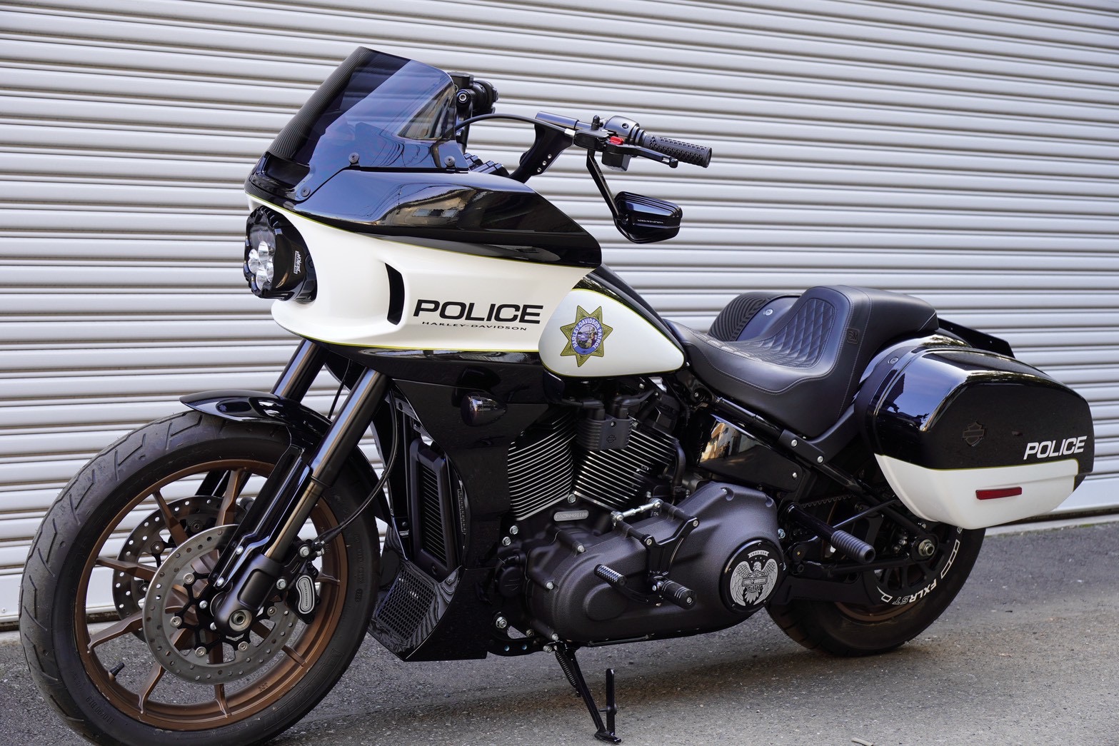 POLICE STはH-D東久留米製作のカスタムペイント車両です。サドルバッグにかけて描かれたグラフィック、特にカリフォルニア・ハイウェイ・パトロールをモチーフとしたタンクロゴが印象的な一台です。YouTube企画 デモ車作成 第三弾。ハーレーダビッドソン東久留米 公式チャンネルで公開。