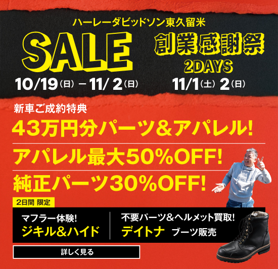 いつもハーレーダビッドソン東久留米をご愛顧いただき、誠にありがとうございます。 おかげさまで 創業43周年 を迎えることができました。 その感謝の気持ちを込めて、今年も【創業感謝祭】を開催いたします!