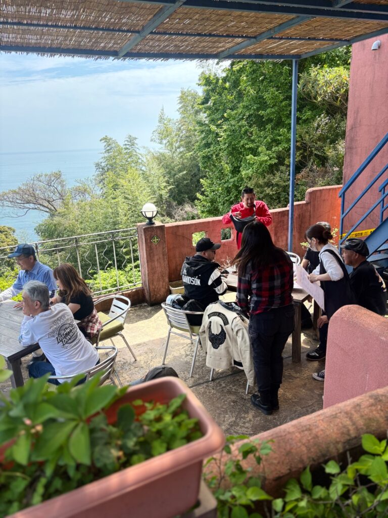 目の前に相模湾が一望できる絶景テラスのお店でランチ休憩。