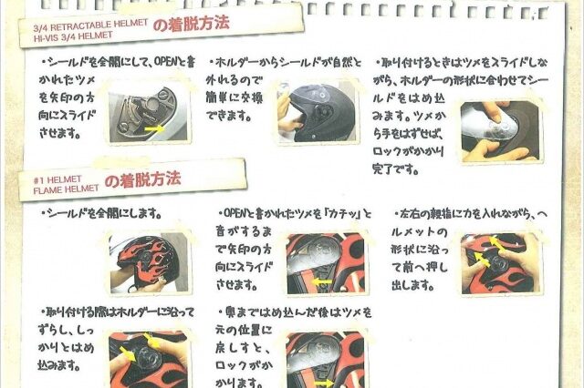 ヘルメットシールドの着脱方法マニュアル(^_^) 夏場はスモークシールドに交換なさる方も多いですよね! シールドをはずしてお掃除すると、シールドとヘルメットの間も綺麗に拭けますよ! さて、来週の七夕ツーリング、是非皆さま…