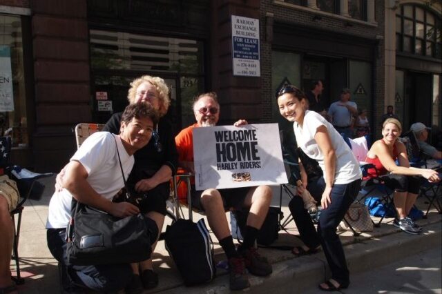 ミルウォーキーで開催された110周年記念イベントのパレード。 5年に一度、開催されるビッグイベントです。 パレードを待つ人々は大興奮。 『Welcome Home』と書かれたボードを用意して、日本のお花見のように場所取り…