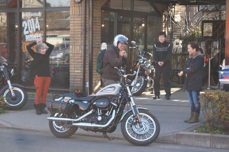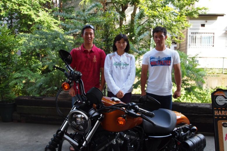 朝の掃除中にハーレーに跨るお客様が・・・・(*゚ー゚)> ご夫婦でいらしたみたいですが・・・( ̄Д ̄;; こんな感じで朝から笑顔が溢れますね。。w(*゚o゚*)w
