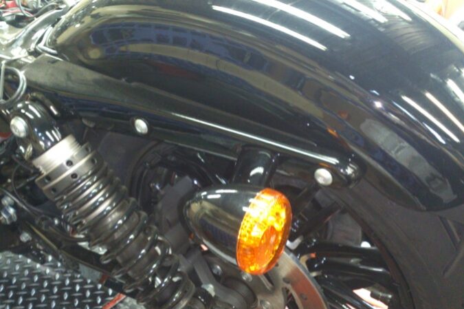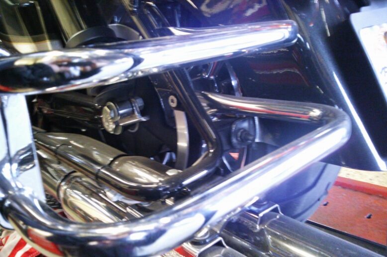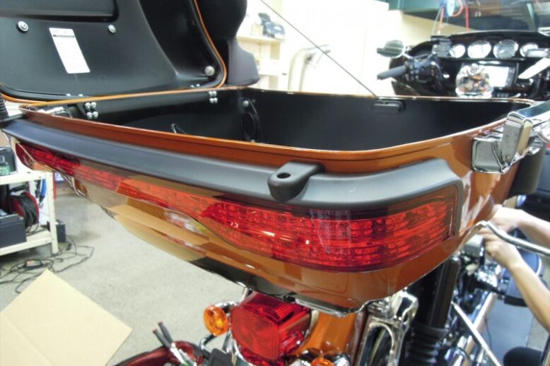 今回は、こちらのパーツを取り付け致しました。 ツアーパックサイド下のメッキパーツと交換です。 取り付け完了。 (≡^∇^≡) 電源を入れますと綺麗に光り輝きます。