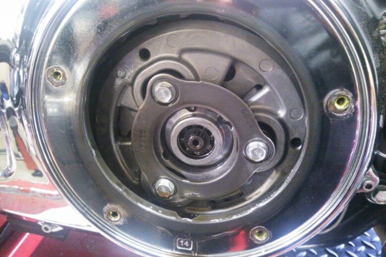 エンジンが完全に暖まると突然エンジンストールw(*゚o゚*)w 全く火が飛びません・・・・(*゚ー゚)> よくよく調べていくと・・・ イグニッションモジュールに不具合が・・ 交換作業の為、リベットをドリルで揉んで外…