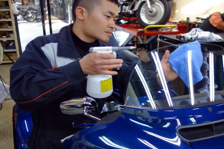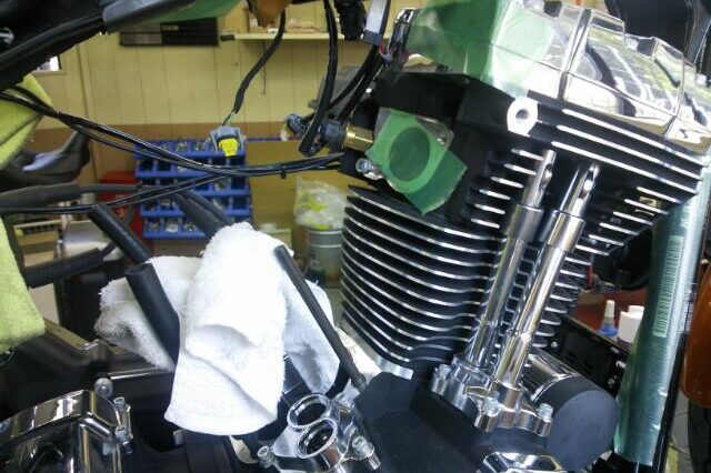 2016 FLSTC 納車前点検&カスタムパーツ取り付け ガラスコーティング作業中です。 お客様にお渡しの際にはピカピカに仕上げ納車致します(^-^ゞ