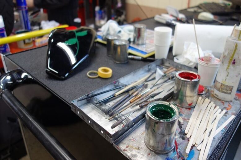 いつもの見慣れたALFAピットの工具箱に絵の具・・・? そうです。 先週末はKIDさんがALFAにて何件かの作品を製作なさっておりました。 こちらの車両はニューモデルのXL1200T❤ 女性らしく、とてもいい感じの仕上が…