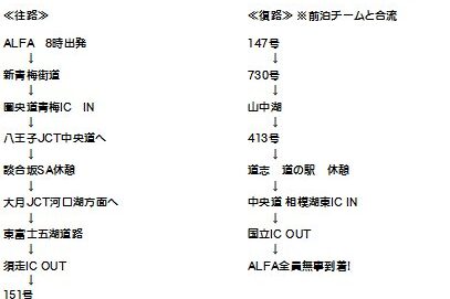 2014 BLUE SKY HEAVEN 24日(土)日帰りチーム のルート決定! ※富士ブルースカイヘブン日帰りチーム、前夜祭参加チームとも、出発時間はALFA前を朝8時です。 帰りは合流してみんなで一緒に帰りましょう…