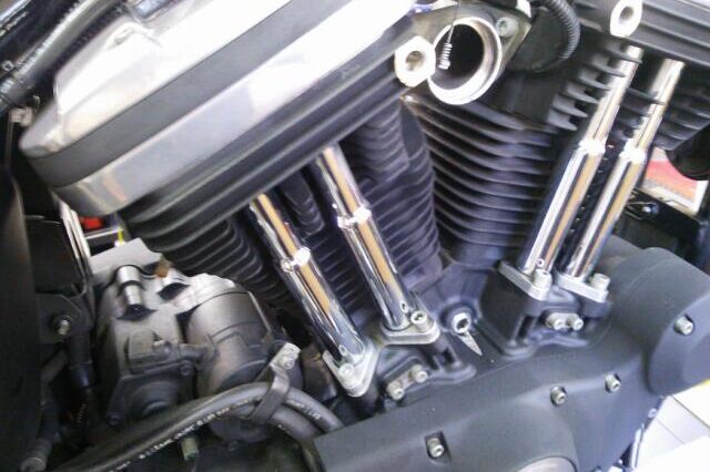 XL883Nにヘッドボルトブリッジを取り付け致しました。 取り付け前 取り付け後 プラグ周りがスッキリし エンジンが引き締まり格好いいですね(^^)d