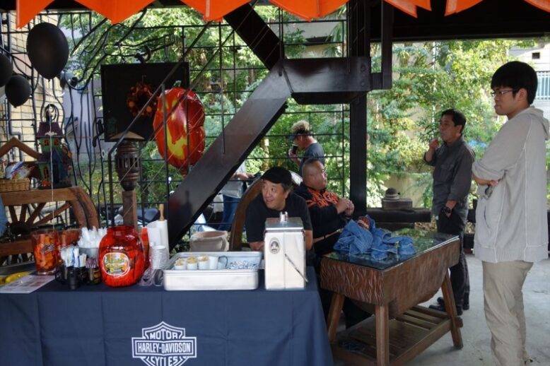 110周年イベント会場はあまりに広いので歩き疲れたときはリフトで移動もしましたよ(^_^) 空からみる景色もなかなかです。 フェイスペイントしたこちらの方々は台湾チャプターのメンバーです。 台湾にはまだハーレーディーラー…