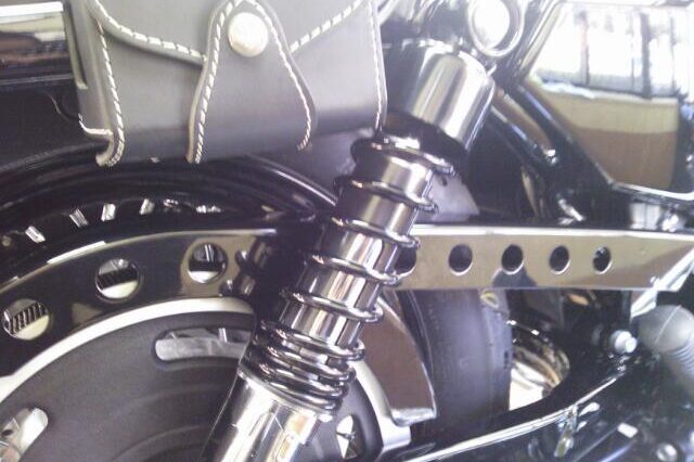 2016年モデル(≡^∇^≡)Forty-Eight 納車整備終わりました(*゚ー゚)> 39mmから49mmにフォークがサイズアップですw(*゚o゚*)w スポークホイールからキャスト…