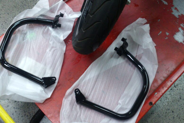 ストリート750にエンジンガードを取り付け致しました(^_^ゞ ラジエーターカバーを取り外し(^-^)/ エンジンガードを固定するための下準備をします(^^)/ 規定トルクで締め付けていきます。 完成です(^o^)/ ス…