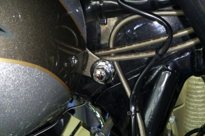 タンク取り付けボルトを62920-00A CHROME FLH FUEL TANK MTG HDWRに交換致しました(^o^)/ 標準はカバーがしてあり(^-^)/ 外すとこのようなボルトが見えます(^_^)/ メッキボ…