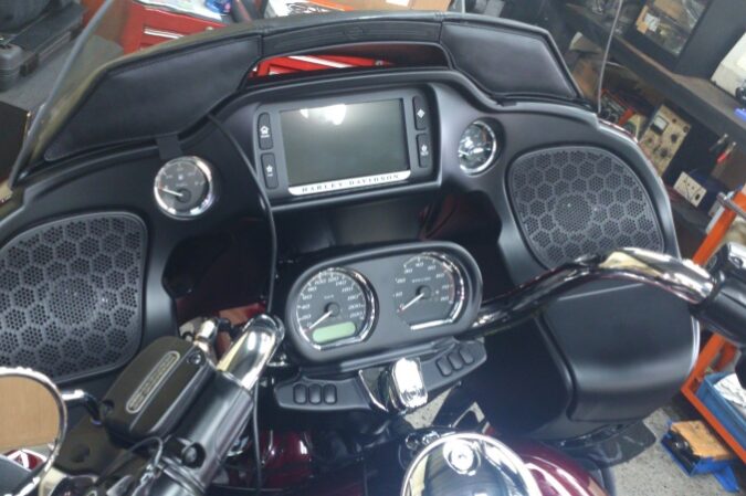 2014,FLHTKにビデオカメラレコーダー アクションカムを取り付けました! この写真はカメラのライブビューリモコンです カメラの映像をモニターできます! ウルトラ標準装備のカラータッチディスプレーの左側に付いているの…